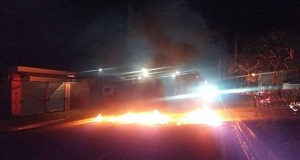 SANTO DOMINGO. Residentes del sector Canaán, ubicado en la carretera Mella, kilómetro 9 ½ esquina Charles de Gaulle, encendieron neumáticos la noche de este viernes, en protesta por los largos apagones y en demanda de asfalto para sus calles.