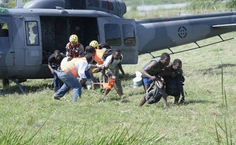 Un helicóptero del Escuadrón de Rescate y Personal de Búsqueda de la Fuerza Aérea Dominicana (FARD) fue enviado al lugar para sacar el resto de los obreros atrapados.