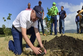 “Este es un día para celebrar, porque miles de ciudadanos dejan sus casas para aportar al medioambiente, para dejar su huella positiva en la conservación de nuestros recursos… y más aún cuando hoy estamos anunciando con mucho orgullo el establecimiento en el Botánico de Santiago de este importante proyecto de conservación genética”, dijo Francisco Domínguez Brito, titular de Medio Ambiente, al hacer la siembra de un espécimen seleccionado del emblemático “árbol nacional dominicano”, declarado como tal mediante la Ley 146-11.
