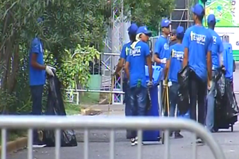 Empleados CND limpian el Estadio Olímpico para el segundo día del Festival