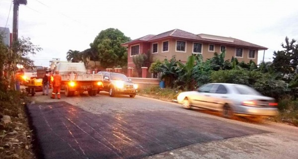 Obreros MOPC pavimentan la calle Santa Teresa en SDE