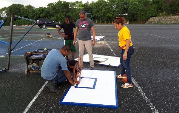 MIDEREC repara canchas de baloncesto destruyeron en la explanada del Peaje