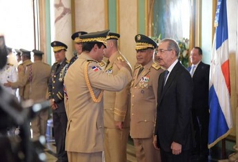 SANTO DOMINGO.- El presidente Danilo Medina recibió hoy los saludos de oficiales superiores con más de veinte años de servicios en las Fuerzas Armadas y la Policía Nacional.