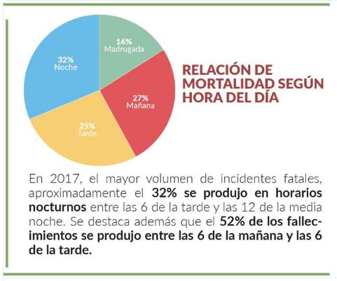“En el año 2017, la mayor cifra de víctimas mortales por accidentes de tránsito se registró los fines de semana (52%), específicamente los domingos, con aproximadamente un 25%”, detalla la AMET.