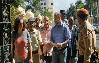 El grupo, encabezado por Matías Bosch Carcuro y el dirigente de izquierda Narciso Isa Conde, que se dirigió al Palacio Nacional a llevar la carta para que sea entregada al presidente Medina