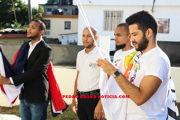 Junto al funcionario participaron en el izamiento de las banderas, el licenciado Grégory Padilla Pujols, encargado de la Unidad de Juventud de la Alcaldía de Pedro Brand, así también miembros del voluntariado juvenil de Ministerio.