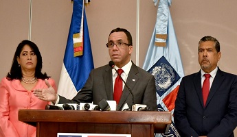 Durante la rueda de prensa, Navarro estuvo acompañado de Milton Torres, director de Fiscalización de Edificaciones Escolares, y Miguelina Santana, directora de Gestión Inmobiliaria.