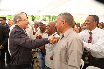Danilo Medina les explicó que “solamente se les va a financiar una parte de los 20 millones y que el resto va a ser un aporte del Estado dominicano, incluyendo el camión, que eso los va a regalar el Fondo Especial para el Desarrollo Agropecuario (FEDA)”.