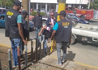 Obreros del ASDE derriban pilotillos impedían libre paso de peatones en la Carretera Mella