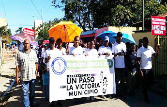 SANTO DOMINGO.- Cientos de personas del distrito municipal de La Victoria marcharon este jueves en reclamo de que esa demarcación retorne nuevamente a la categoría de municipio.