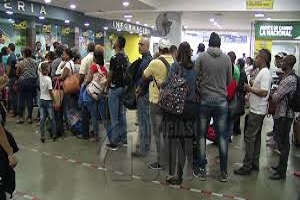 La terminal de Caribe Tour se encuentra abarrotada de vacacionistas que desde hoy abandonan la capital del país. En las paradas de Puerto Plata, Santiago, La Vega, Sosúa, Barahona, Azua, Nagua y Samaná, se pueden observar largas filas de pasajeros.