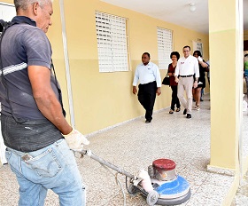 El ministro de Educación, acompañado de un equipo técnico, también supervisó las demás áreas que están siendo intervenidas como la impermeabilización y cambio de lona asfáltica, el reacondicionamiento de las dos canchas mixtas y la de voleibol, la rehabilitación del huerto escolar y la jardinería del plantel, el pulido, brillado y cristalizado de pisos, así como el cambio de pizarras, las astas y banderas, y la limpieza general de la infraestructura.