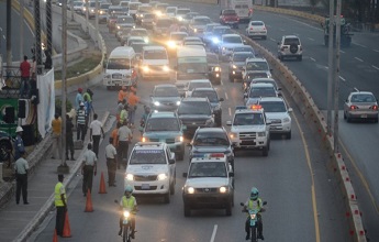 Continúa la entrada de cientos de vehículos que llegan a la capital desde todos los puntos de la región Este, mientras brigadas de la Defensa Civil portando banderas del color naranja, que es el color de la prevención, llaman a los viajeros a encender las luces, bajar la velocidad y a usar el cinturón de seguridad.