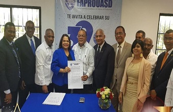 La firma entre la catedrática universitaria y los representantes de la Federación de Asociaciones de Profesores de la Universidad Autónoma de Santo Domingo (FAPROUASD), busca lograr el saneamiento integral de esa academia.
