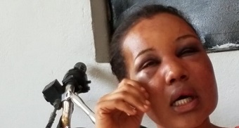 Jazmín Santos denunció que fue al hospital local, donde la inyectaron pero que ni siquiera una receta le indicaron, a pesar de los golpes que presenta en distintas partes del cuerpo, que según dice se los propinó su esposo Fernando Jiménez.