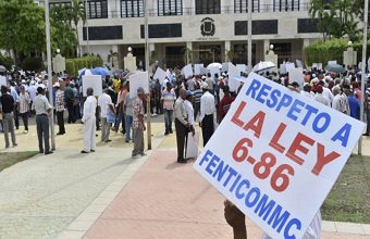 SANTO DOMINGO.- Trabajadores del sector construcción y otras áreas afines se manifestaron hoy frente al Congreso Nacional en contra de un proyecto de ley que pretende modificar la norma 6-86 que contempla el fondo de pensiones para estos obreros y calificaron de “abusador” al diputado del Partido de la Liberación Dominicana, Víctor Mencía, proponente de la iniciativa.