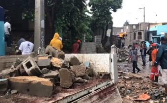 SANTO DOMINGO.- Tras los fuertes aguaceros de la tormenta tropical tormenta Beryl, se desplomaron varias paredes de dos casas en el sector Las Cañitas del Distrito Nacional.