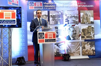 SANTO DOMINGO.- El ministro de Educación, Andrés Navarro, presentó las memorias de gestión institucional con los principales avances de la Revolución Educativa del presidente Danilo Medina, los cuales han permitido el fortalecimiento integral del sistema, y además citó los retos futuros para continuar elevando la calidad de la educación dominicana en los dos próximos años de gestión gubernamental.