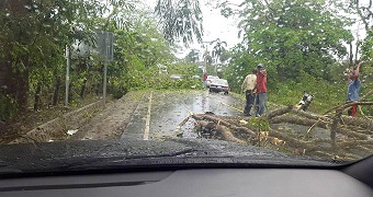 Al lugar se presentaron miembros de la Defensa Civil de Loma de Cabrera, con moto-sierras y otras herramientas, para rehabilitar el tránsito vehicular.
