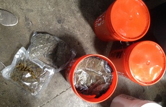 En otro operativo, miembros de la agencia antidrogas y del Ministerio Público, con apoyo de la Dirección General de Aduanas, (DGA) ocuparon 17 libras de marihuana que estaban escondidas dentro de varias cubetas en la Zona Franca del municipio de Tamboril, en la ciudad de Santiago.