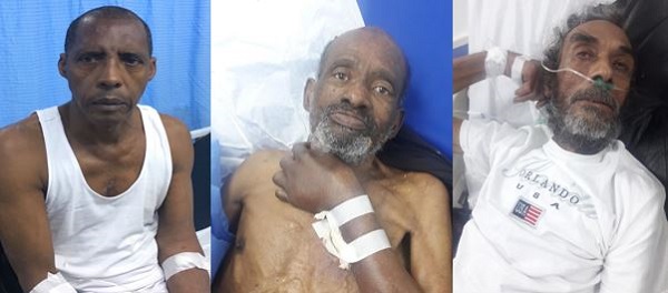 Uno de los caballeros, quien asegura que lleva por nombre José Baret, fue llevado al centro este lunes, mientras, Juan Pineda, supuestamente residente por Arroyo Manzano, Puerta de Hierro del Distrito Nacional, tiene varios días en la Emergencia. Junto a ellos está otro hombre de datos desconocidos; todos permanecen en el hospital a la espera de allegados.