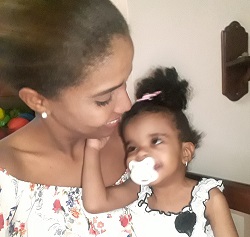 La madre Rainiely Díaz junto a su pequeña Natalia Amparo Díaz quien fue diagnosticada con hipoacusia profunda.