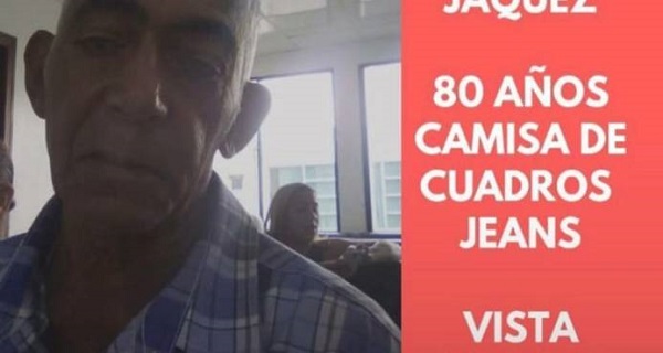 SANTO DOMINGO.- Familiares del señor Manuel Antonio Jáquez reportaron su desaparición este sábado. Jáquez, de 80 años, salió el viernes pasado del sector Vista Hermosa, de Nagua con destino a Santo Domingo, y nunca llegó.