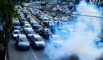 SANTO DOMINGO.- La Policía lanzó gases lacrimógenos y dispersó a los pasajeros que se apostaron en las avenidas 27 de Febrero con Máximo Gómez, tras el paro iniciado hoy por sindicatos de transporte.