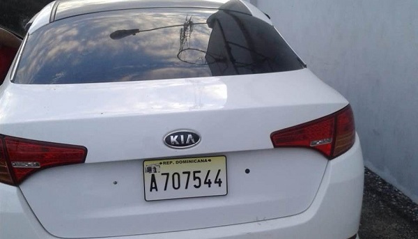 Se trata del carro marca Kia, de color blanco, año 2011, el cual se encuentra en el Comando Regional Nordeste de la Policía Nacional. El mismo al ser depurado figura con una denuncia por robo interpuesta por su propietario el nombrado Víctor Manuel García Lora, residente en Jima Arriba, provincia La Vega.