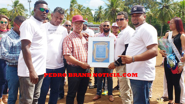 Durante la ceremonia se entregaron placas de reconocimientos a Teleforo Rodríguez “por su entrega al deporte en nuestro municipio” y al alcalde por ser un aliado del deporte en el municipio de Pedro Brand y sus organizaciones deportivas sus grandes aporte al desarrollo del mismo.