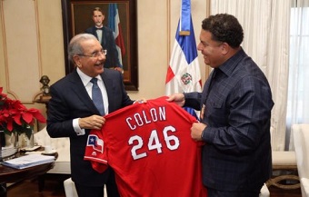 Presidente Medina recibe al lanzador de Grandes Ligas Bartolo Colón