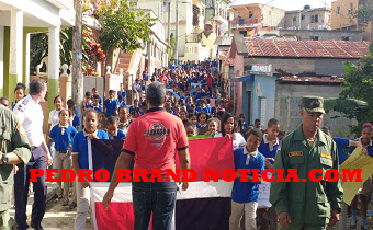 PEDRO BRAND.- A propósito de conmemorarse el próximo domingo 25 el Día Internacional de la No Violencia contra la Mujer, la escuela Campamento 16 de agosto de este municipio realizó hoy una caminata que recorrió varios sectores del casco urbano de esta demarcación.