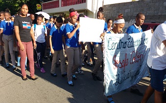 Estudiantes de La Guáyiga caminan unidos para eliminar violencia contra la mujer