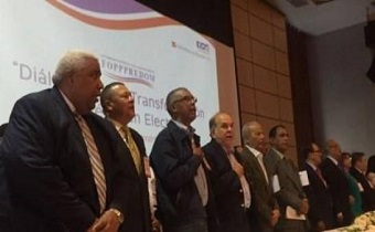 Integrantes del Foro Permanente de Partidos Políticos de la República Dominicana (Fopppredom) y Juntos Podemos.