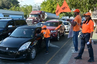 La tarde de este viernes, el personal de la Defensa Civil realizó un bandereo en las principales vías de país, entregando brouchures informativos y portando pancartas con mensajes preventivos.