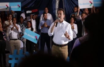 El candidato presidencial fue recibido entre aplausos durante la actividad en la que se juramentaron 32 coordinadores provinciales y más de 200 voluntarios que desde ahora estarán sumando jóvenes en universidades, barrios y caseríos de todo el país.