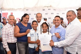 PEDERNALES.- Llenos de alegría los beneficiarios del proyecto “INVI-Villa Progreso La Colonia Pedernales” recibieron este viernes por parte del Instituto Nacional de la Vivienda (INVI) las llaves y los certificados de sus apartamentos construidos por el Gobierno.