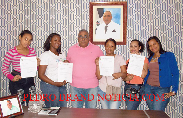 PEDRO BRAND.- El alcalde de este municipio entregó hoy cuatro de nueve becas universitarias a igual número de jóvenes estudiantes para cursar una carrera en la Universidad del Caribe (UNICARIBE).