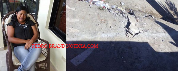 PEDRO BRAND.- La propietaria de una tienda de ropas en el barrio Eduardo Brito de este municipio denunció que una brigada contratista de la Empresa Distribuidora de Electricidad del Sur (EDESUR) destruyó parte de la calzada de su negocio y se niegan a repararla.
