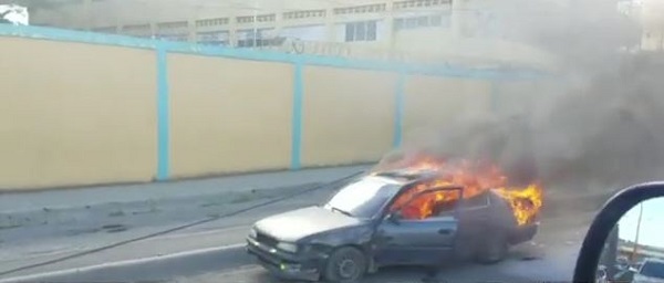 Vehículo se incendia en calle marginal de la Máximo Gómez y provoca gran taponamiento