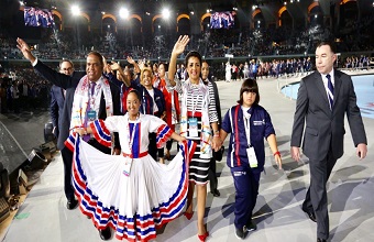 Los 21 atletas que integran la delegación dominicana desfilaron además acompañados del ministro de Deportes, Danilo Díaz. Caminaron junto a otras 170 representaciones de igual número de países.