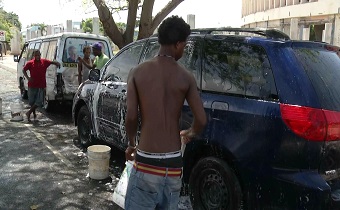 Lavadores informales de vehículos se sienten presionados por operativos de la CAASD