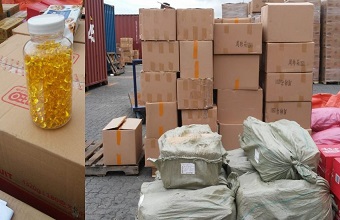 En el proceso de inspección, los oficiales de Inteligencia Aduanera constataron que en el contenedor RFCU5033912 venían 1,793 bultos de productos para el hogar que, en realidad, camuflaban 25 mil 248 frascos de medicamentos sin etiquetas (263 cajas de 96 unidades cada una) y 32 cajas de medicamentos al granel. Además, dos mil 400 botellas de cerveza (200 cajas de 12 unidades cada una), 768 botellas de ron (32 cajas de 24 unidades), así como 240 latas de cerveza, todos de manufactura china.