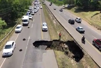 El hundimiento del pavimento se produjo en el kilómetro 144 de la autopista Duarte frente a la entrada del Aeropuerto Internacional del Cibao.