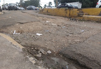 El daño a la calle de unos 300 metros está localizado cerca de la Intendencia de la Gobernación de la Provincia Santo Domingo en este municipio.