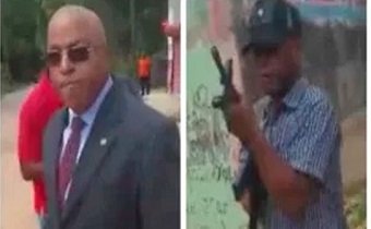 En un audiovisual que circula en las redes se observa al congresista con una pistola en la mano y uno de su seguridad con un arma larga.