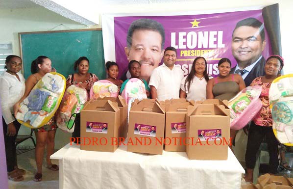PEDRO BRAND.- El aspirante a alcalde del municipio Pedro Brand por el Partido de la Liberación Dominicana (PLD), José Luís Collado Contreras (La Clave) regaló este jueves canastillas y cajas con alimentos crudos a embarazadas y otras personas en su mayoría envejecientes que residen en el barrio Eduardo Brito de este municipio.