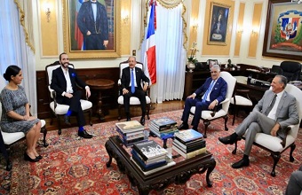 Bukele, quien fue elegido el pasado 3 de febrero con el 53 por ciento de los votos, fue recibido en la casa de Gobierno dominicana por el presidente Danilo Medina.