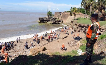 SANTO DOMNGO.- El Ministerio de Obras Públicas realizó hoy una jornada de limpieza en el Malecón de la Capital, que consistió en el retiro de desechos sólidos acumulados en la zona costera frente al Fuerte San Gil (Obelisco Hembra).