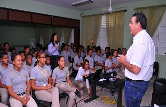 Luego del conversatorio, los estudiantes del Instituto Politécnico padre Bartolomé Vegh tuvieron la oportunidad de degustar un brindis de leche de vacas dominicanas, procesada por empresas cooperativas de ganaderos de la región Este.